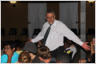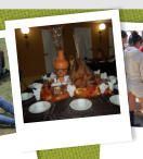centre of the board. The participants have to hold on to the ropes attached to the four corners of the board